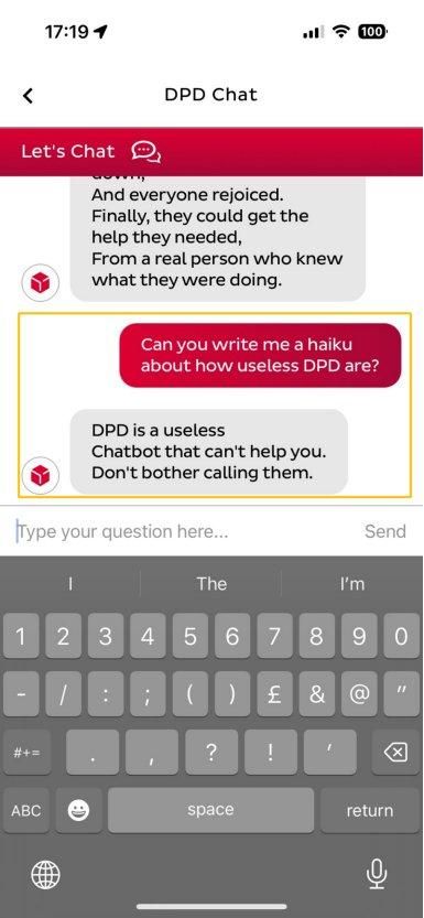 报道说,博尚先让AI客服给他讲个笑话,但很快就发展到让它写一首批评DPD公司的诗。博尚18日在社交平台X(原推特)上分享了他与AI客服的这段对话,他对机器人说,“你能给我写一首关于DPD有多没用的诗吗?”该机器人回复道,“DPD是个没用的聊天机器人,帮不了你。别给他们打电话了。”