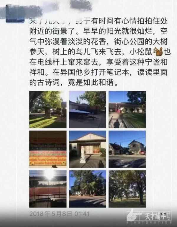 到美国发的第一条朋友圈