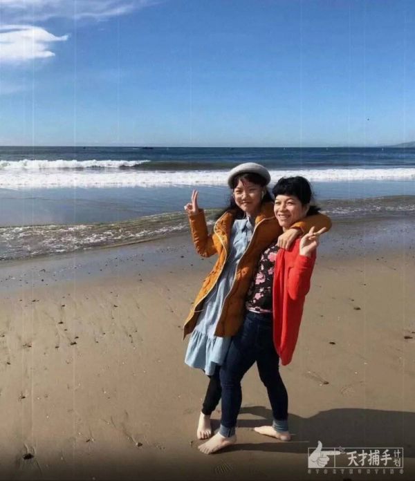 刚团聚那阵子,母女俩到海边玩