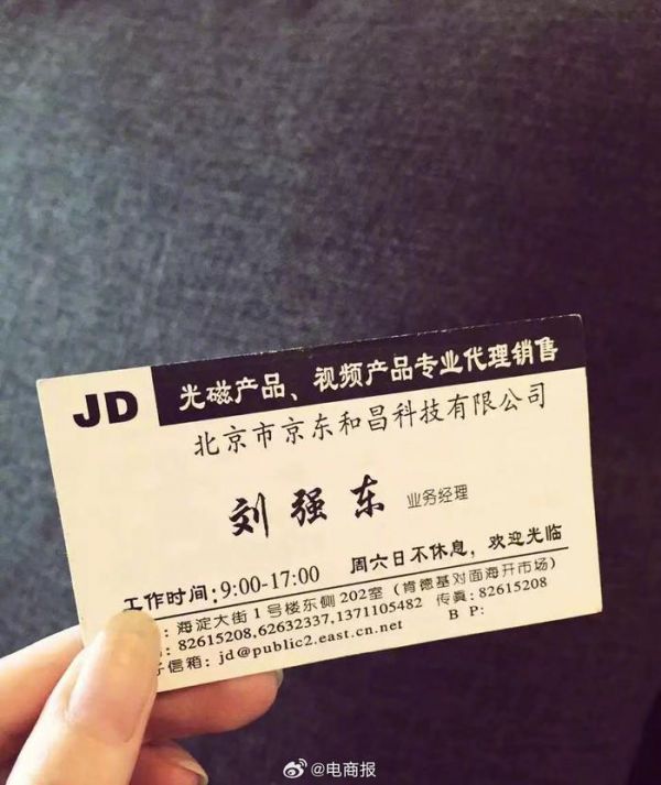 创业不易,刘强东当年的名片