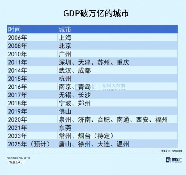 到那时,万亿俱乐部成员或将扩容至三十座城市。