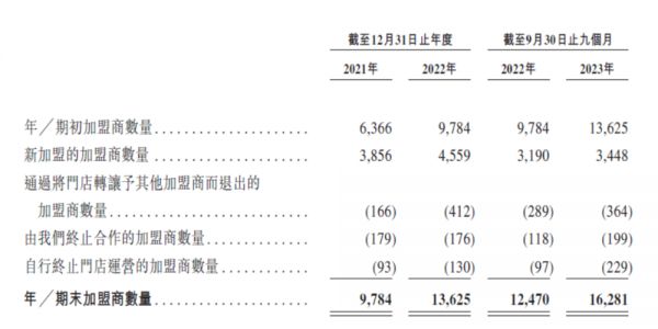 图:蜜雪冰城加盟门店情况,来源:招股书