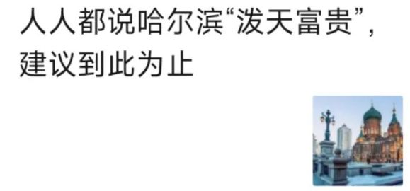 最近哈尔滨旅游爆火之后,网络上出现了不少唱衰泼冷水阴阳怪气的言论,比如“消费降级”“小心一地鸡毛”“只有短期效应”“巨资修建冰雪大世界不划算”,还有最有代表性的“大城市经济靠旅游没什么用”“泼天富贵的背后,你们的实体经济呢?”之类。