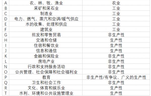 参照ISIC4标准粗略划分,并不严谨