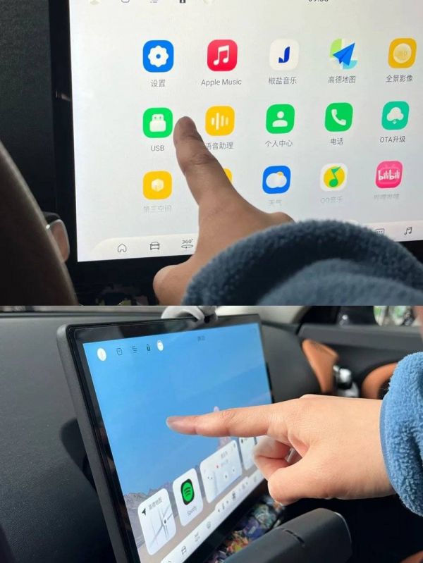 但是目前,被很多人吐槽像一个“大号手机”的车机大屏并不冤枉。许多车机系统还是基于平板、手机系统做的交互设计,比如我的车机操作,返回主屏幕五指锁成一团,屏幕底部上滑呼出菜单栏,右上角下滑呼出通知中心。