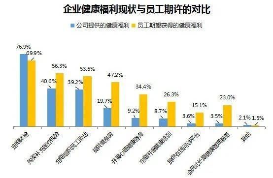 然而,就目前情况而言,只有30%公司提供健康福利,远低于员工预期。落差最明显的几个方面,分别是提供企业健身房,远程医疗服务,以及会员制长期健康管理服务等福利。