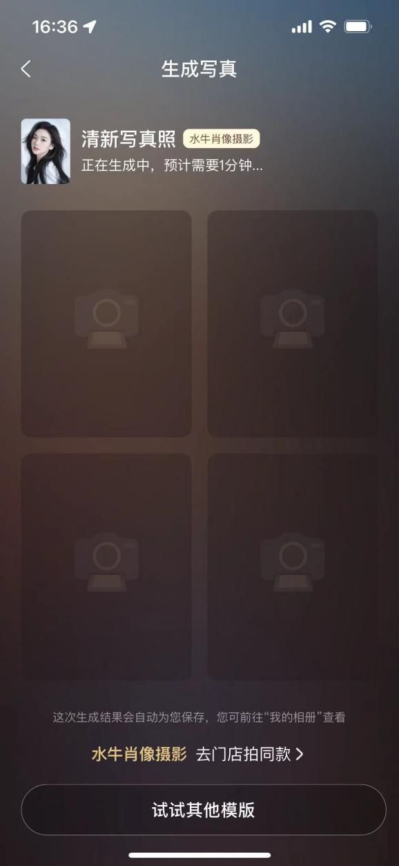 也就是说,"AI摄影馆"的产品本身,并不会作为对应用户消费的终点,而是会成为相关实体店铺消费的起点——用户通过对应模板生成"预览照",如果满意,再去线下实体店铺拍摄"精修照"。
