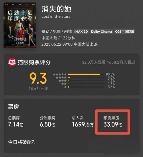 《消失的她》猫眼票房预测
