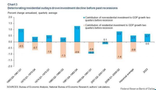 还是之前说了无数次的问题,今年美国经济的核心是失业率,不是通胀,借用从朋友圈看到的一张图,美国萧条前一般是居民部门投资出问题。
