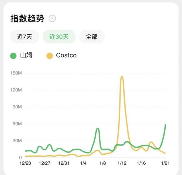 根据深圳龙华区工信局的消息,开业当天,Costco创下了不少纪录,会员开卡数全球第一,开业当天销售额全国第一。微信指数也显示,Costco深圳店开业后,其搜索量一度远超山姆。