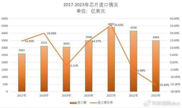 2023年,我们进口芯片4795亿颗,同比减少589亿颗,下降10.8%。进口芯片的金额为3494亿美元,减少了662亿美元(约4750亿),下滑下降15.4%。