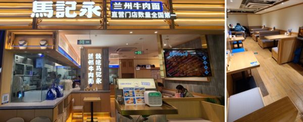 另一家同样在美食街区、同样是面馆新贵的马记永,同样顾客寥寥。马记永·兰州牛肉面开在美食街区的B1层,门店是斜长条,走进去可以看到好些空位置。
