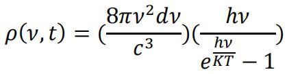 普朗克非常努力地尝试,最后,作为“绝望的行为......无论如何,不惜一切代价获得预期的结果”,他为腔壁上的作用,而不是辐射本身,引入了能量不可约化波包(irreducible packet),或者说量子(quanta)的概念[9]。1900年12月中旬,他提出了一个统计推导,涉及假设的腔壁振子中能量量子的分布W。它没有更多的理由,只是给出了预期的结果。1907年,他写道: