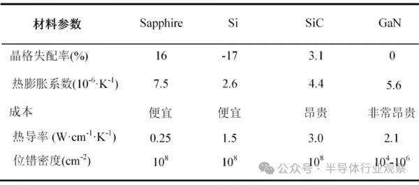 不同衬底材料特性比较(来源:《高压低功耗新型氮化镓功率器件机理及结构研究》)