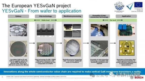 在功率半导体领域,欧洲一直是具备深厚的基础和技术积累。YESvGaN联盟是博世、意法半导体、Soitec、Siltronic、AIXTRON、X-FAB等企业和德国研究机构Fraunhofer IISB、Ferdinand Braun Institute、比利时根特大学、西班牙瓦伦西亚大学等分布在7个国家设立据点的23家公司/组织组成,由欧盟的研究开发项目“ECSEL”JU”以及欧洲各国提供的资金。