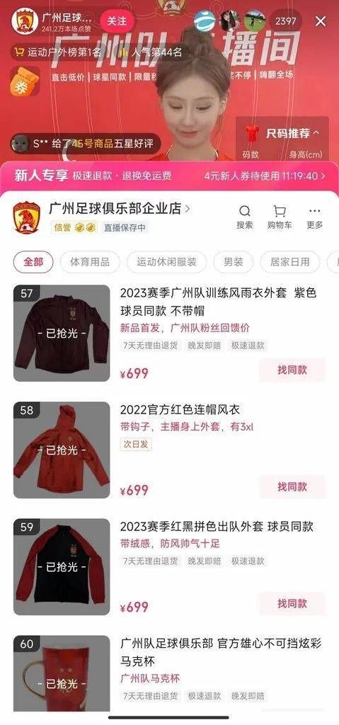 俱乐部的抖音直播间是各方合力的一个缩影。从1月20日上午10点开始,直播间就进入了紧张的带货当中。弹幕陆续出现了支持广州的声音,有球迷看到商品价格全部打折,担心俱乐部赚不到多少钱;也有球迷询问是否能够提前确认收货,让俱乐部尽快拿到货款。后续更有陕西、大连、成都等多地球迷过来表达对广州队的支持。