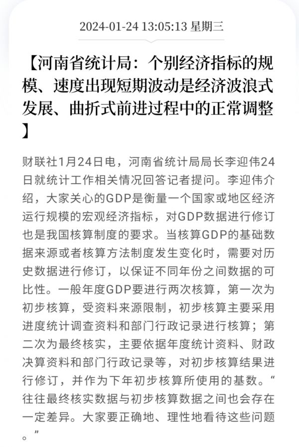 这话没错。经济数据庞大而复杂,每年年初只有初步统计资料,必然存在一定误差,而到了年末或次年有了完整统计资料,自然要进行最终核实与调整。
