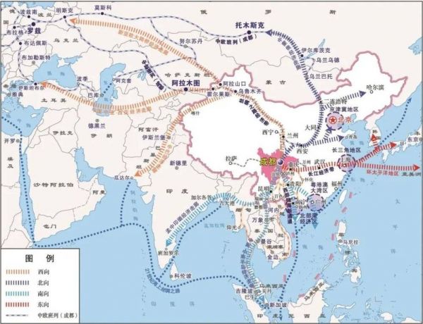 随着市市通高铁、县县通高速、中欧班列、陆海新通道、航空物流枢纽等基础设施的完善,中西部地区得以摆脱区位劣势,内陆地区得以蜕变成开放前沿。