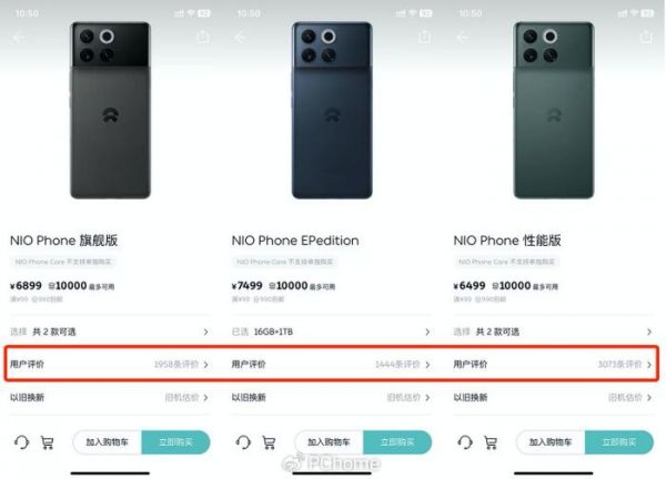 事实上,结合蔚来商城的数据来看,蔚来手机的热度确实不高。目前蔚来商城正售卖三个型号的蔚来手机,这三款手机的总评论量6475条,就算按评论与购买量1:10的比例测算,蔚来手机的推测购买量也不过6.5万台左右。