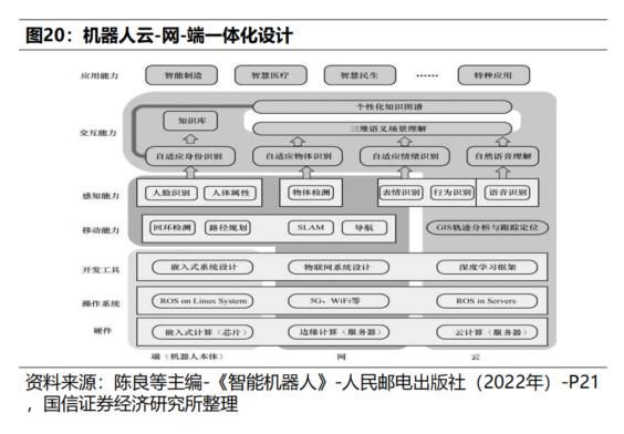 由于机器人本体计算能力有限,需要通过强大的云端计算能力给机器人赋能。由此构成了“云-网-端”架构。