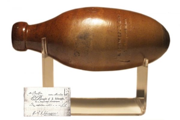 1783年,瑞士人约翰·雅各布·施韦普(后文简称”施韦普“)发明了这颗“蛋”,并在瑞士日内瓦创立了与自己同名的公司Schweppes,也就是我们所熟知的那个卖超酸柠檬味汽水的怡泉。而施韦普发明的这个装碳酸水的瓶子由于外形像鸡蛋,也被后人称为“Egg Bottle”(鸡蛋瓶)。