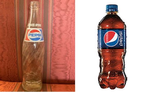 在造型上不甘“平庸”的,还有百事可乐。1958年,百事可乐推出了一款“漩涡瓶”。与可口可乐直上直下的“纹理”不同,百事可乐的瓶身采用了漩涡状的纹理设计。而这款瓶子漩涡状的造型,也成为百事可乐的标识符。不仅在玻璃瓶上一直沿用,并且也曾被百事可乐运用到塑料瓶产品上。