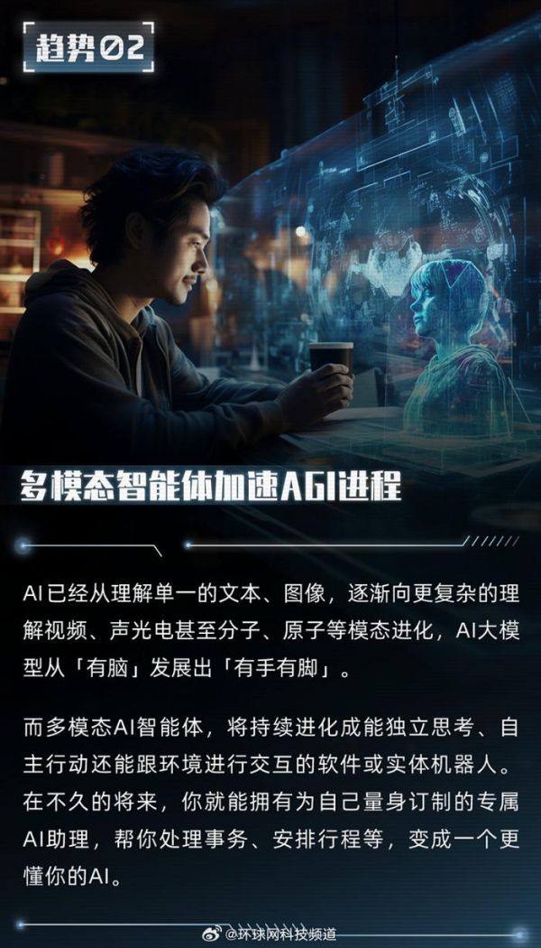2024 年,将会有哪些技术深刻改变我们的生活?近日,腾讯发布《2024数字科技前沿应用趋势》报告,预测了数字科技未来发展趋势和应用前景,“过去一年,我们见证了数字科技的加速度。眺望未来2-3年的科技趋势,我们正驶向一个由连接衍生交互、由计算催生智能的时代。”报告提出:高性能计算、量子计算、云计算和边缘计算这“四大计算”融汇贯通,正催生全新的计算范式;通用人工智能渐行渐近,大模型走向多模态,AI智能体(Agent)可能成为下一代平台, “AI科学家”有望加速问世;全球已达共识,AI治理将引领我们踏上更智慧、更安全的未来。此外,数字交互引擎在高效构建虚拟世界、与现实世界高质量交互的过程中,不断实现技术迭代,并逐步实现了跨行业、跨场景应用;手机卫星电话、垂直起降飞机将改变我们的应急方式和出行模式;交通网、信息网、能源网的融合,将推动智能、绿色的能源变革。