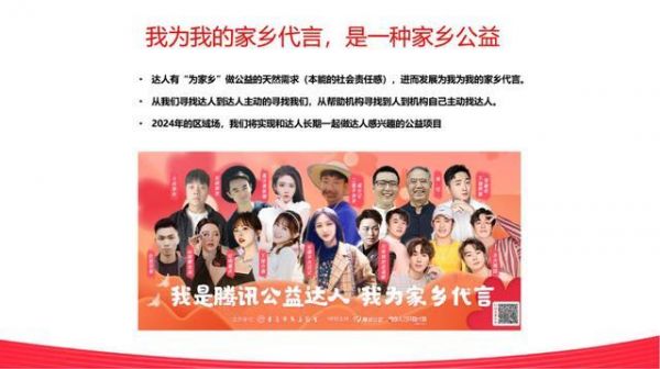 因此,在提到2024年的公益计划时,杨杰表示将集中力量发展“家乡公益”,让达人宣传自己更感兴趣的、与家乡有关的公益项目。 与此同时,达人如果认可某个公益项目,愿意为某个公益项目代言,均可以在腾讯公益的平台上发起“一起捐”,从而产生实际的公益影响力。