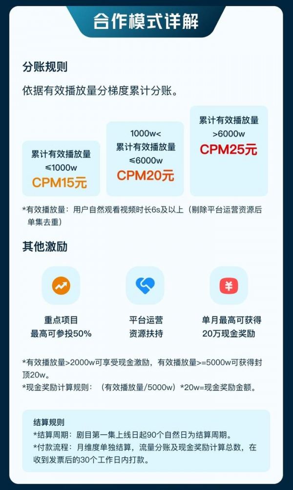 现金激励、分账提高、参投加码,为优质内容提供全面扶持