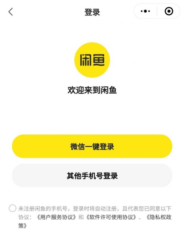 (左图:闲鱼微信小程序;右图:闲鱼App)登录界面:用户只需要使用闲鱼所绑定的微信号登录,就可以实现App和小程序上的信息互通。