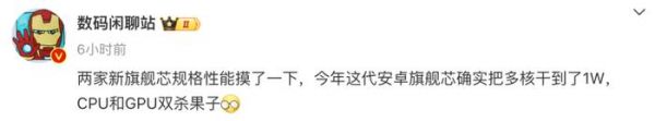 今天,博主@数码闲聊站 在一份爆料中提到:“两家新旗舰芯规格性能摸了一下,今年这代安卓旗舰芯确实把多核干到了1W,CPU和GPU双杀果子”。