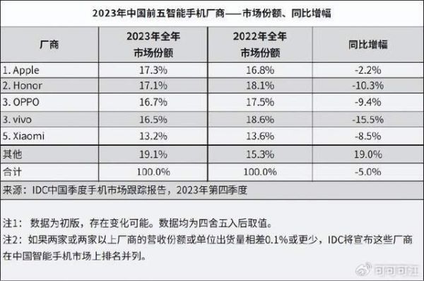 最近IDC便公布了2023年中国手机市场前五智能手机厂商,排名令人深思。