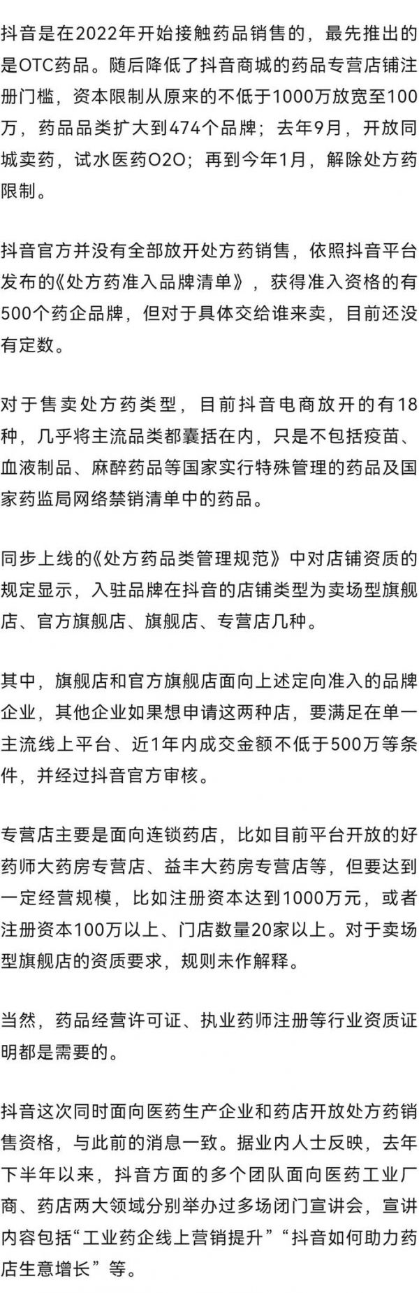 抖音开放处方药销售,500家品牌商拿到首轮入场券