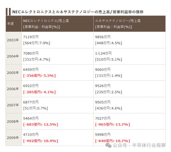 尽管NEC电子有着深厚的底蕴与优势,但从 2005 年起,它就陷入到了困境之中。2005至2009这五年当中,仅有2007年因任天堂Wii的成功而短暂实现盈利,在其他年份里,虽然MCU业务表现良好,但围绕SoC而开发的先进工艺的成本与日俱增,导致它一直处在亏损状态之中。