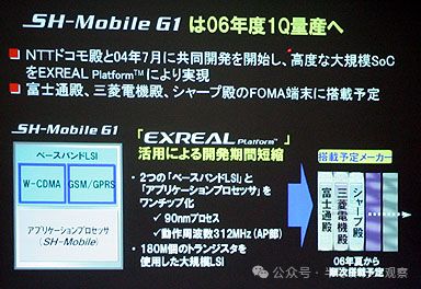 截至 2005 年, SH-Mobile 联盟在全球有 200 多家成员,这一年 SH-Mobile 的出货量达到 1300 万台,甚至超过了世嘉游戏机 Dreamcast 的出货量。成功的背后,瑞萨押宝了日本功能手机市场最大的运营商 NTT DoCoMo,从 2004 年开始与 DoCoMo 共同开发 SH-Mobile G 系列,虽然 DOCOMO 阵营中只有三家公司采用了 SH-Mobile G1,但出货量早在 2007 年就超过了 1000 万部,并在 DOCOMO 开发的 3G 服务 FOMA 手机中达到了 50%的占比,算是一场得之不易的胜利。