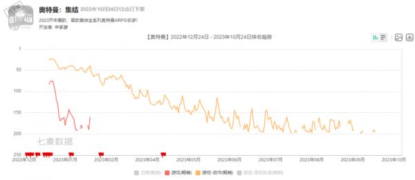 时运不济的还有中手游发行的《奥特曼:集结》。这是一款ARPG卡牌游戏,但被玩家吐槽是“换皮版传奇”,游戏质量似乎不佳。它在2022年4月底曾进行了一次iOS和安卓双端的不删档测试,当日排到iOS畅销榜第58名。但游戏上线当天就表示“发现了一些严重的技术问题”且短时间内无法突破,决定关闭测试并开启退款。游戏最终定档去年1月正式上线,不过成绩还不如之前那次测试,很快就在10月下架了。