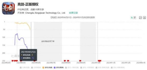 网易的《三国诛将录》则堪称年度最惨,上线运营的时间仅有五个月,期间从未进入iOS畅销榜200名以内——包括上线初期。这是一款三国题材的无双动作游戏,刚上线时还曾在2023ChinaJoy参展宣发,不过看来是没能吸引到太多玩家。