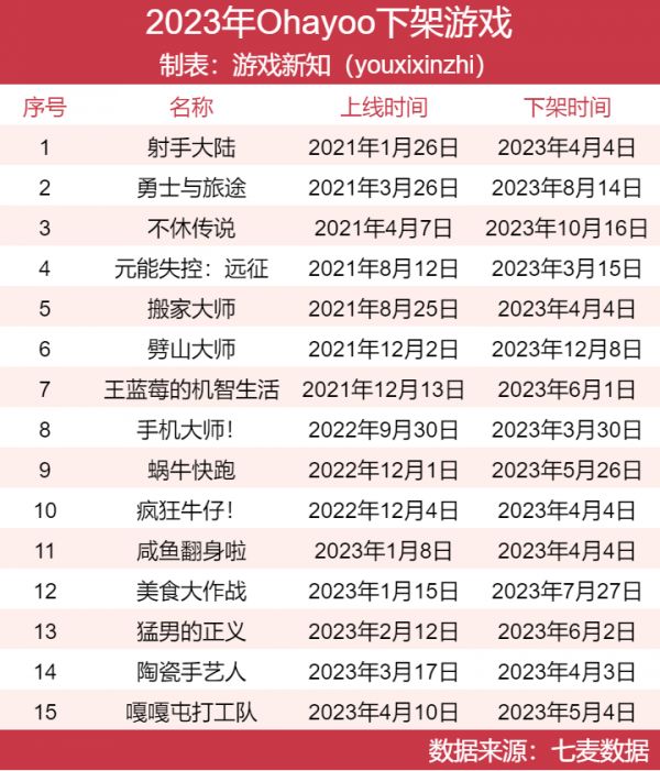 就连以快速迭代为特点的休闲品类,似乎也更没有耐心等待劲头不足的游戏了。游戏新知单独整理了Ohayoo去年下架的游戏(仅包含iOS),发现字节旗下的这家几乎是休闲游戏“风向标”的发行商,今年淘汰尾部游戏的速度显著加快了。