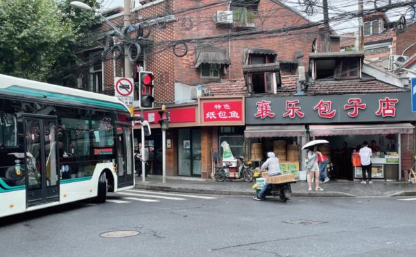 它是一个长方形的地块,长的一翼是长乐路,短的一条边在襄阳北路上。这块新规划中可能会变成公园的街角,最醒目的是襄乐包子店。把着路口,一整屉鸡蛋一整屉包子气势磅礴。2021年5月的时候,还是竹笼屉,几个白衣老妇,站在那里包包子——虽然取明厨之意,但可不像是大商场里高大上的小笼生意那么有非遗气,给你感觉就是后厨站不开,把操作台赶到了前面。不时有服务员端着大盆出来,将脏水倒在路边的窨井里。