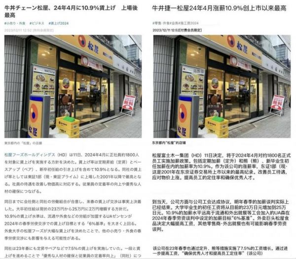 近日日本股市创新高," 第四消费时代 " 并没有走向低迷衰败,而是持续发展、迈入下个周期。不久前牛肉饭三巨头之一的松屋,也发布公告涨薪 10%。这虽然与日本国内的通胀有一定关系,不过也体现了牛肉饭的抗周期性。
