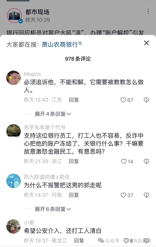 或者用跟风的抱怨与谩骂来纾解情绪,将自己在银行受到的委屈一吐为快。