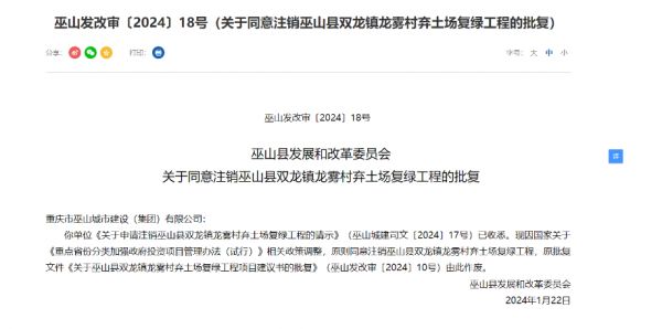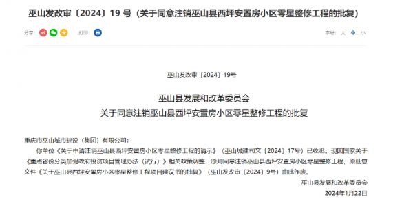 一些地区已经开始按照政策要求注销部分项目。1月22日,重庆市巫山县发展改革委即发布了两条关于同意注销相关工程的批复,其中提及原因为:“国家关于《重点省份分类加强政府投资项目管理办法(试行)》相关政策调整”。