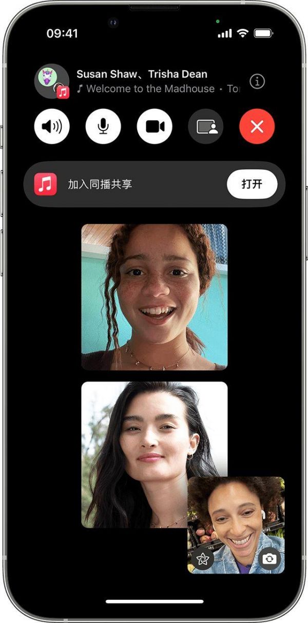 “同播共享”重点在于分享,用户使用 FaceTime 进行视频聊天时,可以使用该功能分享音乐、电影剧集或者干脆是自己的手机屏幕,对方可以获得和我几乎一致的观看收听体验。