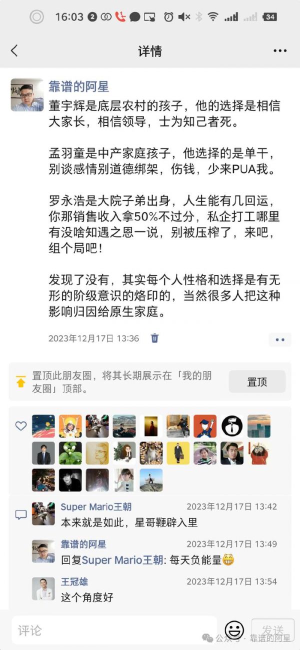 在那个事件之中,我写过一条文案火出圈,讲董宇辉阶级意识、孟羽童的阶级意识、罗永浩的阶级意识的对比,全网至少有一个亿流量,至今在各个平台还有人抄袭这条文案获得流量。