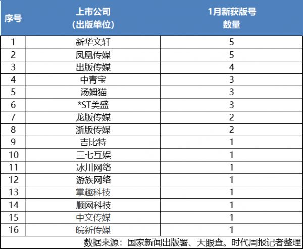 其中,上市公司新华文轩(601811.SH)、凤凰传媒(601928.SH)斩获最多,均有5款游戏获得版号;出版传媒(601999.SH)紧随其后,有4款游戏获得版号。这3家上市公司共拿下14个游戏版号。