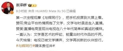 其中,就央视综艺频道著名节目主持人张泽群,还专门发了一条微博,高度评价了董宇辉的这场直播。张泽群不仅真诚赞赏了董宇辉直播卖书的价值,也直言不讳的指出当下电视媒体的症结所在。言语犀利,直指要害,风格一点也不像当下大多数当红的央视主持人,有网友甚至开始担心张泽群会不会被穿“小鞋”,也引发了一定程度的关注和讨论。