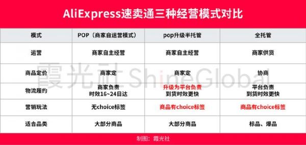 以图中速卖通上的几种经营模式为例,有专业人士分析,继全托管风靡跨境电商全行业后,POP卖家(商家自运营模式)出路一直备受关注。“半托管”正是对这批POP卖家的痛点——跨境物流服务,进行升级,帮助卖家快速补齐短板。