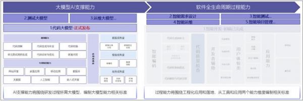 为进一步发挥大模型等 AI 技术在软件工程领域的潜力,推动智能化软件工程(AI4SE)行业健康有序发展,2024 年 1 月 25 日,中国信息通信研究院(以下简称“中国信通院”)与中国工商银行联合牵头发起的《智能化软件工程技术和应用要求 第 1 部分:代码大模型》(标准编号 AIIA/PG 0110-2023)标准正式发布。