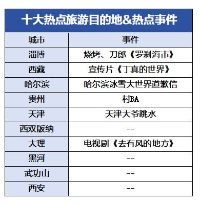 近期,抖音结合视频内容和搜索数据,公布了2023年十大热点旅游目的地,前十名为淄博、西藏、哈尔滨、贵州、天津、西双版纳、大理、黑河、武功山、西安。综合来看,其中多数城市都能找到近期发生的热门事件或文化作品。