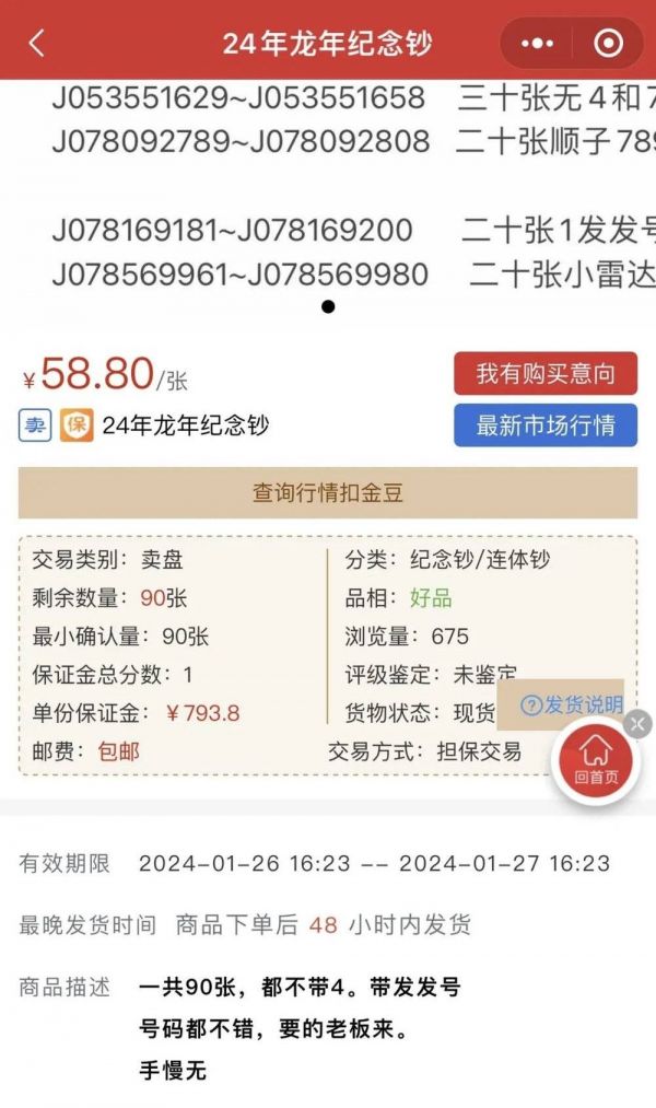距离1月3日龙年纪念钞正式开放预约已过去近一个月,但龙钞在邮币交易市场上依旧热度不减。